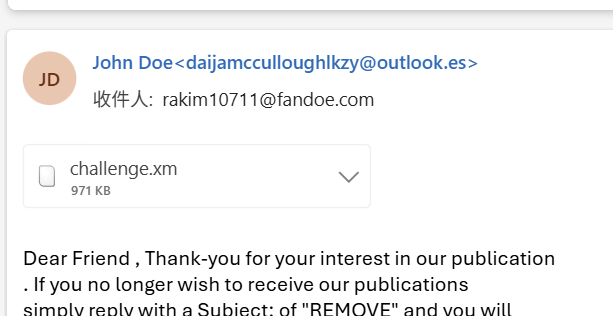 给了一个邮箱文件,outlook 打开可以发现还有一个 challenge.xm 文件