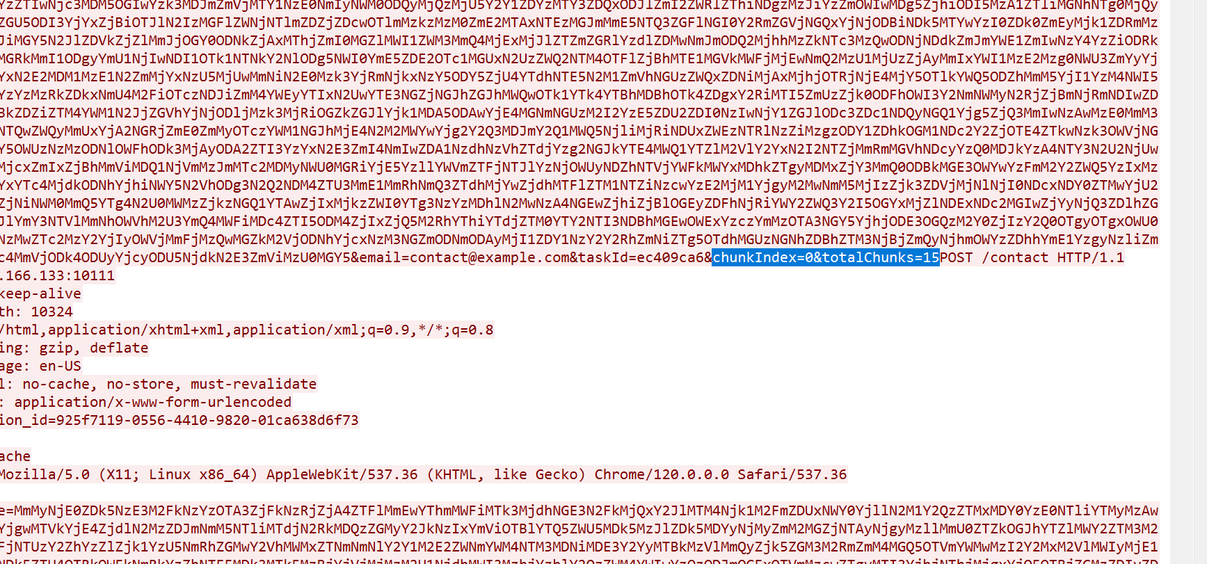 找截图使用的工具,从 2786 数据流在对数据进行分片传输,一共 15 片