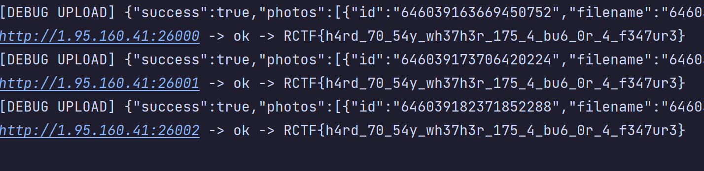 而 Auth::type() 实际上读取的是图片的 type 字段。如果让某张图片的 type 变成小于 0 的值,就能拿到 flag ,图片的 type 是从上传接口写入的,这个接口直接把 $_FILES['type'] 原样存进数据库,而 $_FILES['type'] 由请求中的 multipart/form-data 文件分段头的 Content-Type 决定,完全可由客户端控制